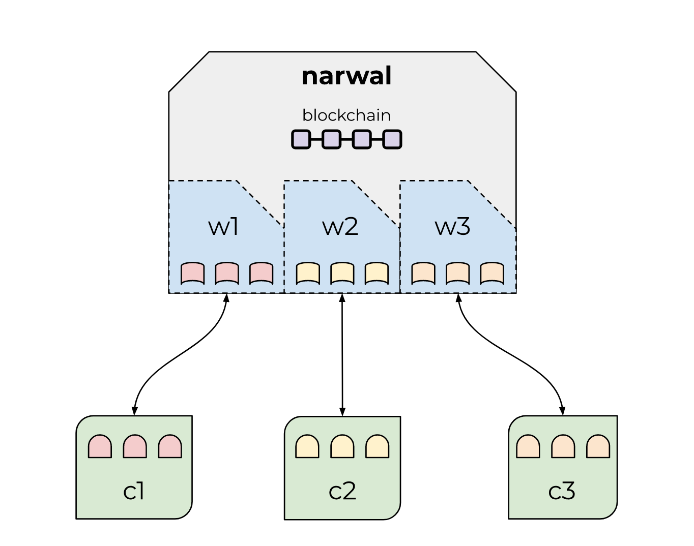 single copy of the blockchain to instantiate multiple "virtual" walrus servers. To a client, these